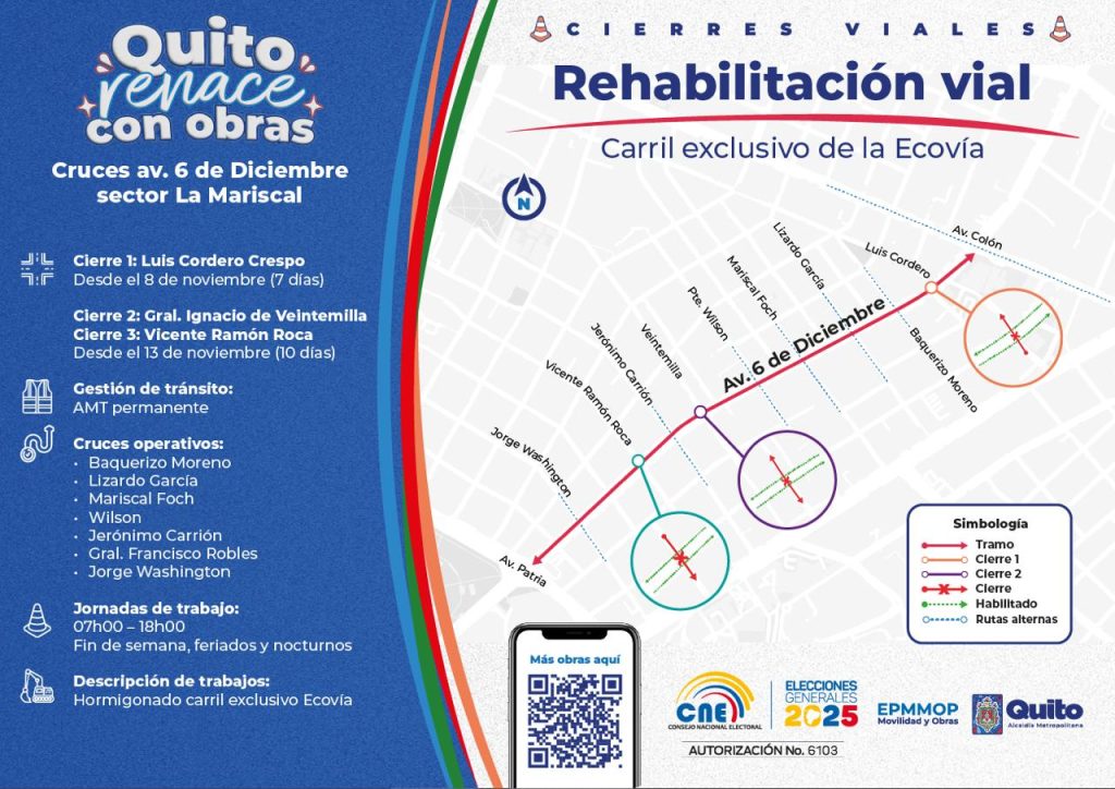 Publicaciones recientes Desde el 8 de noviembre se realizará el cierre temporal de los cruces de la Cordero, Veintemilla y