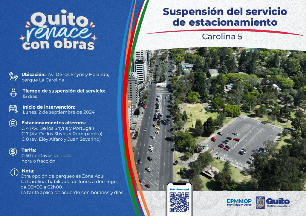 Publicaciones recientes Estacionamiento Carolina 5 suspende el servicio por avance de obras del nuevo bulevar en av. De los Shyris