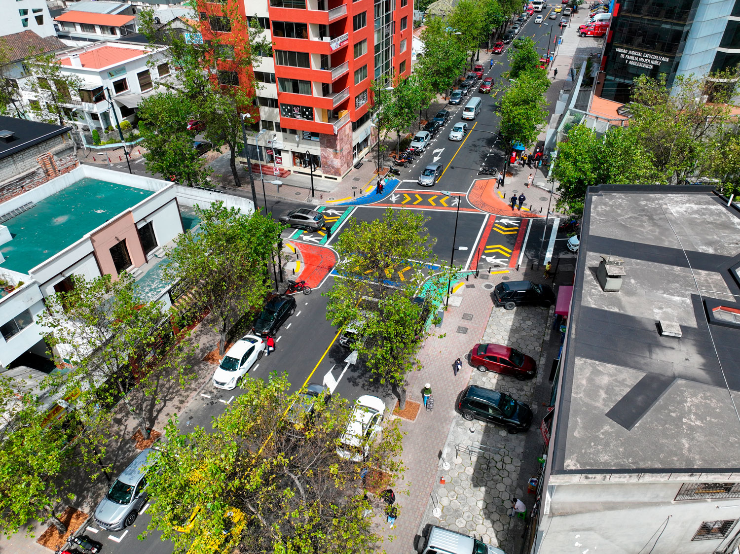 El tramo 2 fue intervenido por la Epmmop con asfalto de vías, mejoramiento de veredas y alcorques (cajones de árboles) y urbanismo táctico en los cruces (pintura en calle)