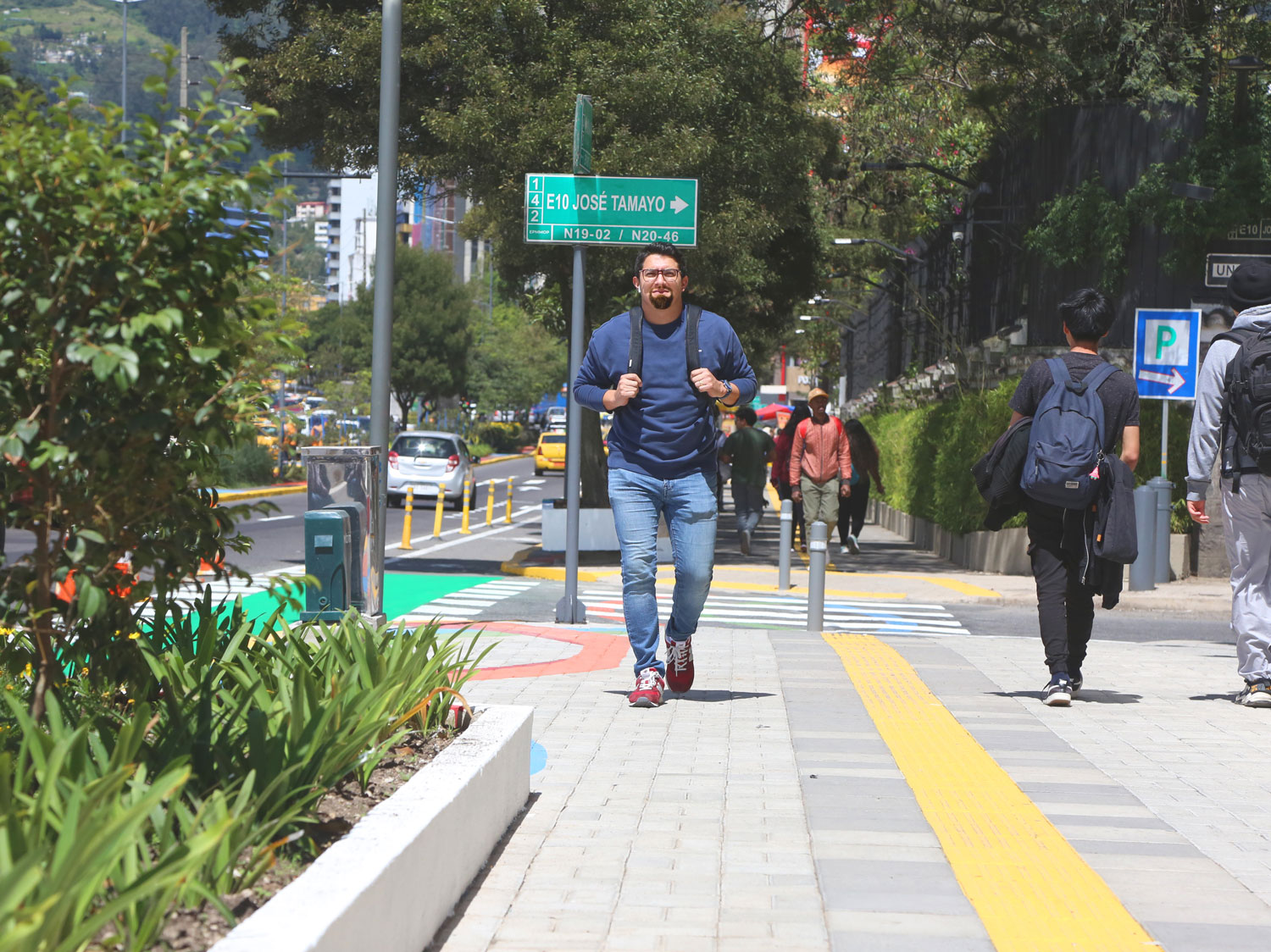 ‘Senderos Seguros’ promueve un cambio de mentalidad hacia una ciudad caminable; la interconexión de espacios facilita la movilidad fluida de los ciudadanos, crea un tejido urbano que motiva la inclusión y la interacción social y, por ende, incide en la percepción de seguridad. Las principales intervenciones para lograr un ‘Sendero Seguro’ incluyen: soterramiento de cables, mejora sustancial en la iluminación vial y ornamental con lámparas led que tienen mayor potencia; instalación de cámaras de seguridad ciudadana conectadas al ECU 911; construcción de rampas y caminos con piso podotáctil para la accesibilidad universal. A todo esto, se le suma la remodelación de plazas, la arborización y siembra de plantas ornamentales que en conjunto enriquecen la biodiversidad y el atractivo visual creando un impacto positivo en la imagen urbana. Por ello, la administración municipal avanza con la planificación de nuevas intervenciones en las avenidas Amazonas y Colón.Sendero Patria